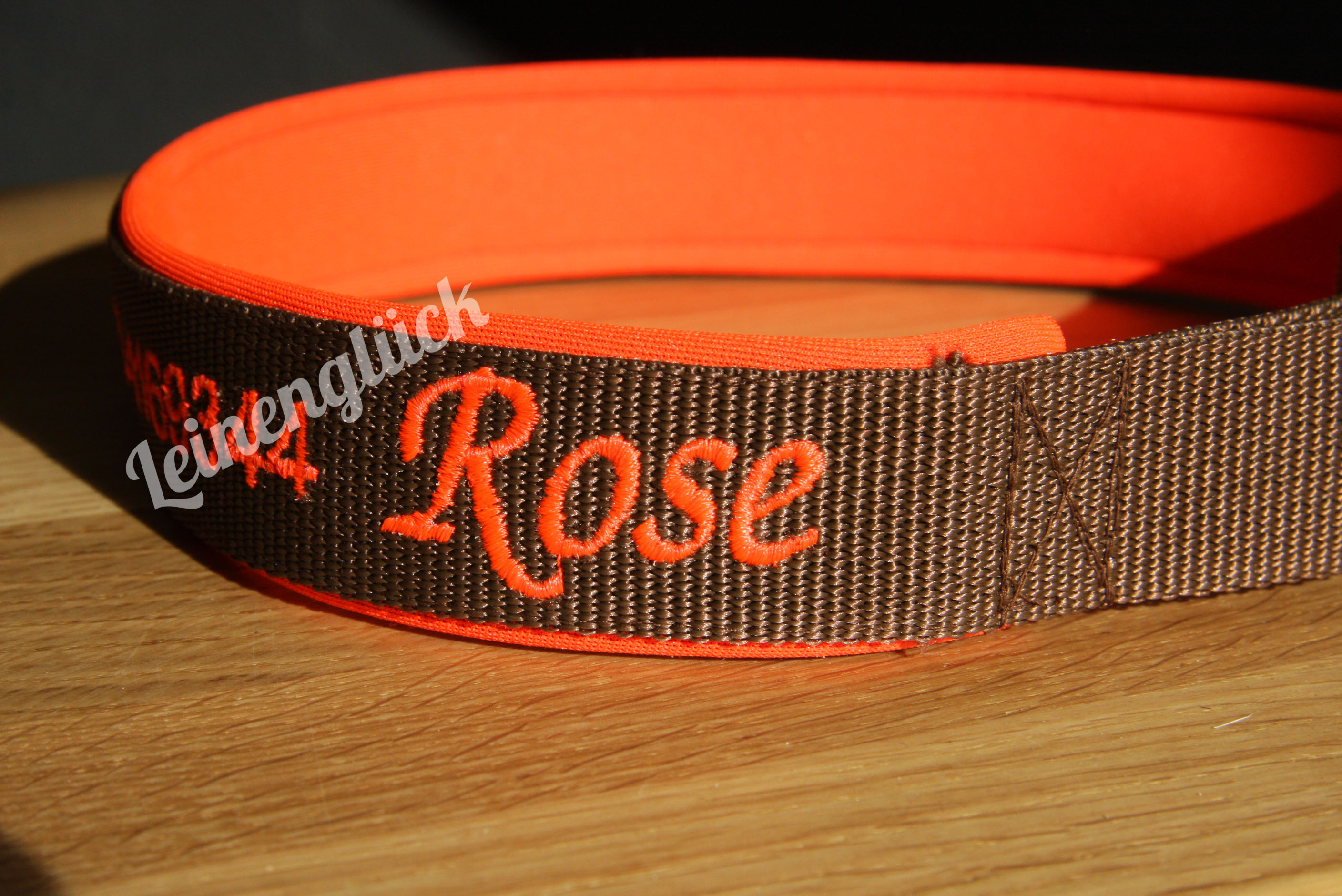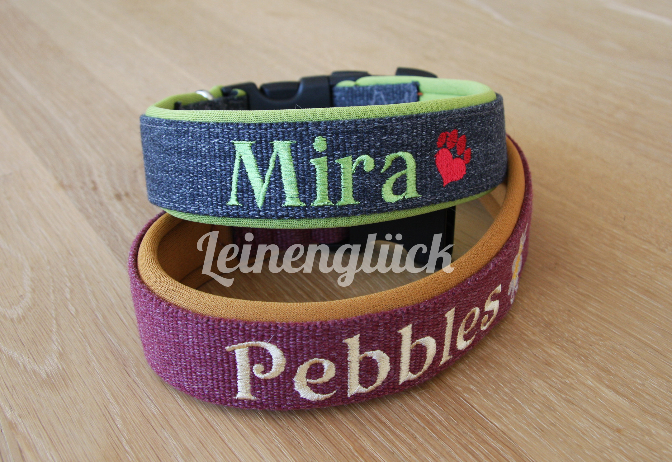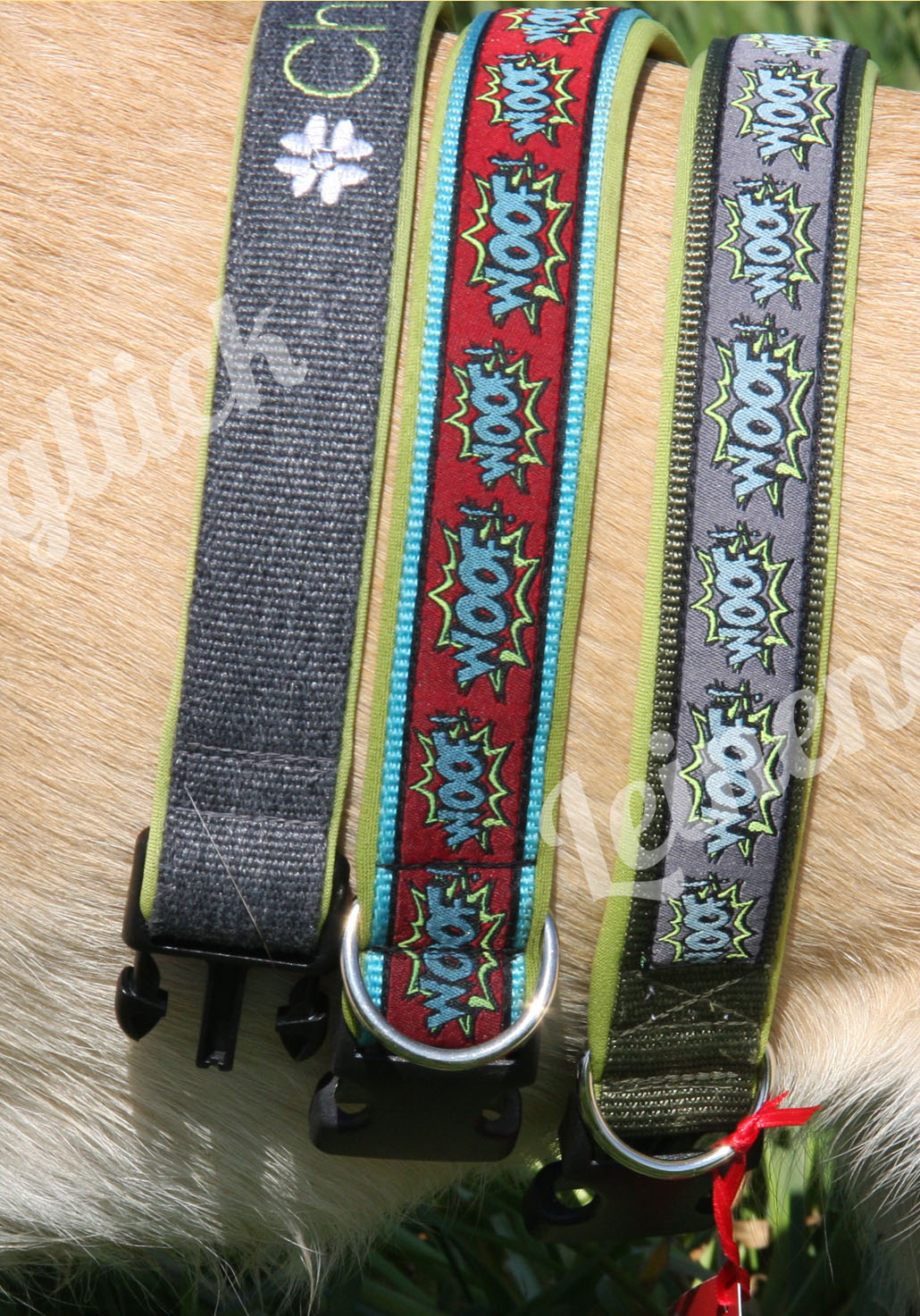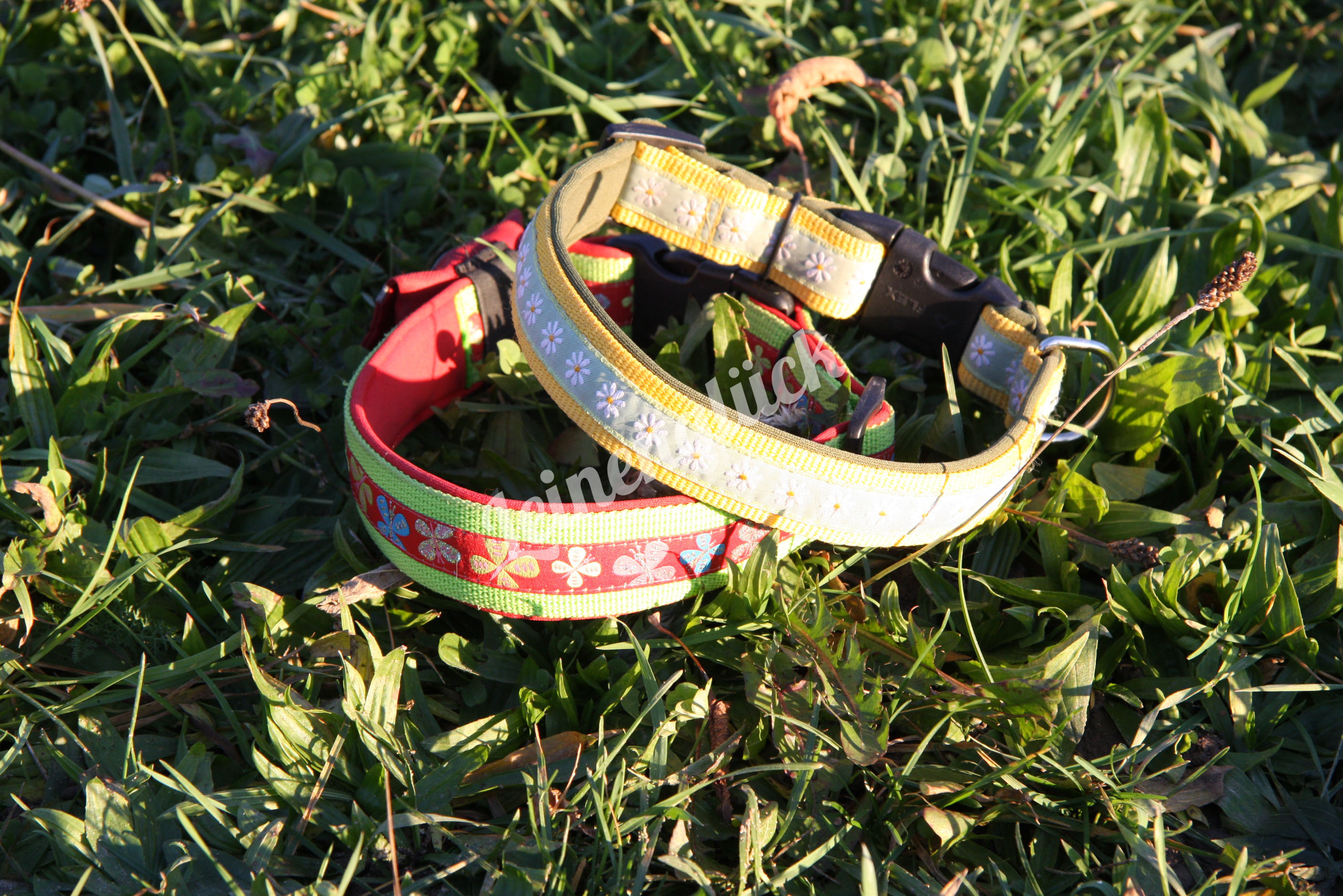 Halsbänder Obwohl wir empfehlen Hunde am Brustgeschirr zu führen, bieten wir auch Halsbänder mit einstellbarem Halsumfang und mit Zugstopp Jeder Hundeführer sollte sich bewusst sein, dass der Hals seines Hundes ein sehr empfindlicher, intimer Bereich ist (wie beim Menschen auch). Mit dauerndem „Leinenruck“ am Halsband kann er die Wirbelsäule seines Hundes dauerhaft schädigen und auch den Kehlkopf und die oberen Atemwege belasten. Deshalb bieten wir die Halsbänder als schmückendes Accessoire an.