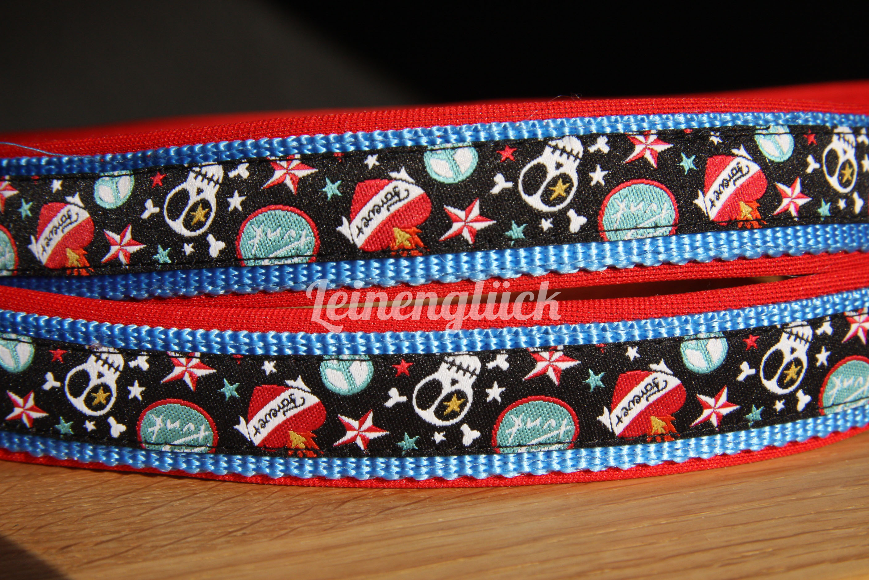 Leinen Egal ob Brustgeschirr oder Halsband: Erst durch die passende Leine wird das Set komplett und zu einem echten Hingucker, sowohl in der Stadt als auch auf der Hundewiese. Die Länge, Art der Schlaufe und Polsterung passen wir Ihren individuellen Vorlieben an. | ![]() ![]() |